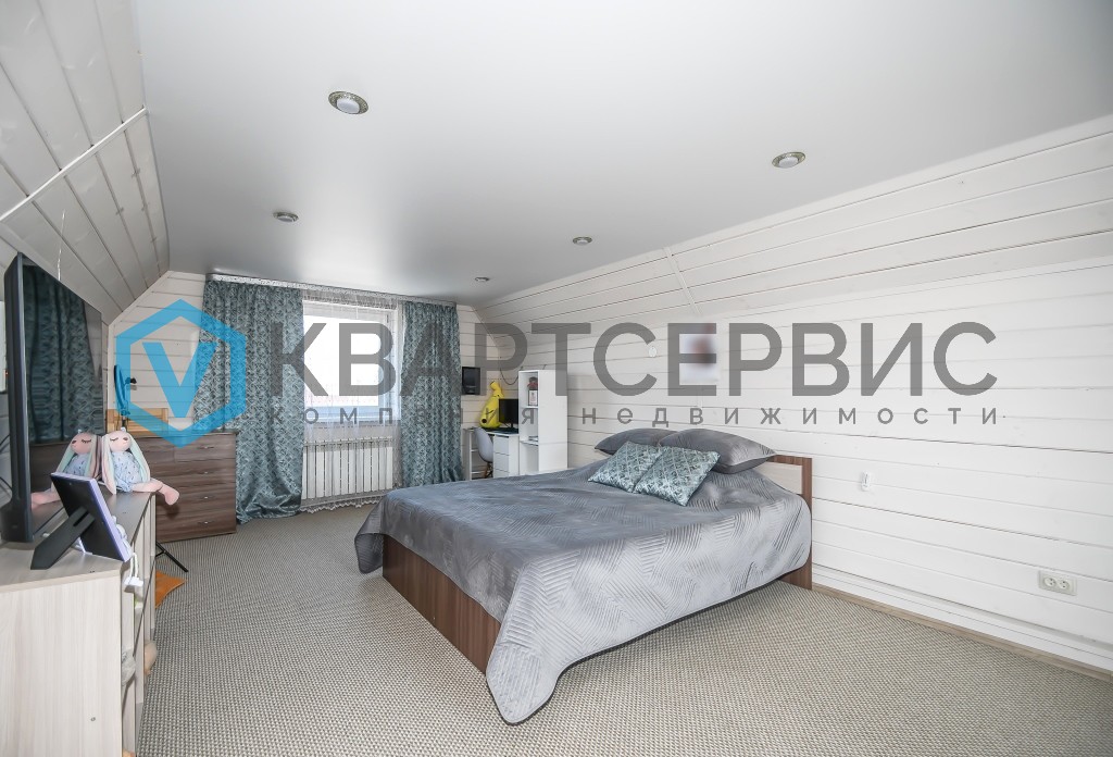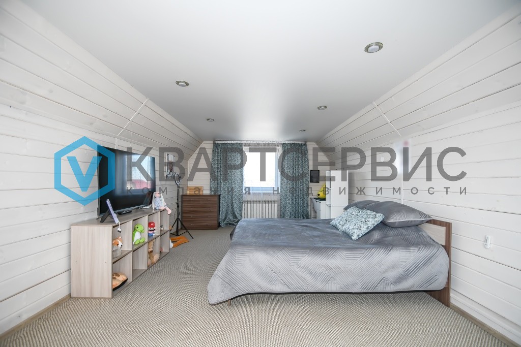 Первый этаж сделан из кирпича и обшит сайдингом, второй этаж из каркаса. На втором этаже просторная комната с двумя окнами для максимально естественного освещения и качественного проветривания, сохраняя ощущение легкости и комфорта.