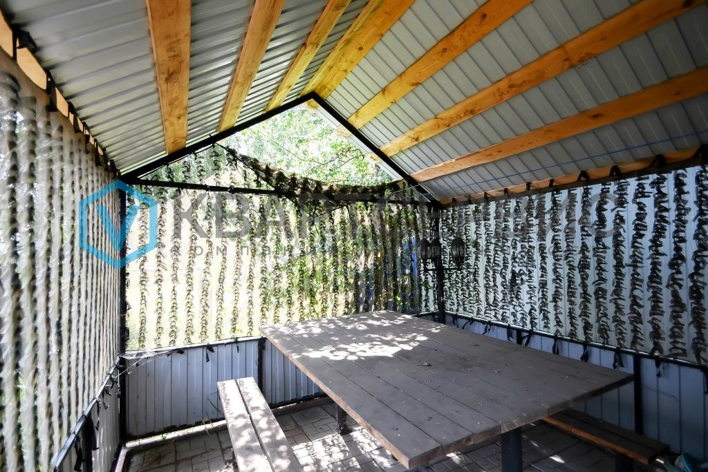 Ремонт: внешне законченный дом. Фундамент, винтовые сваи 89/6 мм. 3 м. Перекрытие цокольное и перекрытие верхнее (потолок по скату кровли) из SIP-панелей толщиной 224 мм. (ППС 25 ГОСТ, ОСБ 12 мм.). Стены внешнего контура из SIP-панелей толщиной 174 мм. (ППС 25 ГОСТ, ОСБ 12 мм.). Стены несущие внутренние (обозначены большей толщиной) деревянный каркас, без утепления и обшивки. Облицовка кровли и фасада. Энергосберегающие 5-камерные окна ПВХ графитового цвета. Теплый водяной пол с полусухой стяжкой. Терраса из деревянной сухой доски, покрытое маслом для террас. Лестница деревянная. Гипсокартон 12 мм. 2 слоя, без шпатлевки и покраски. Перегородки из металлического профиля и гипсокартона с шумоизоляцией.