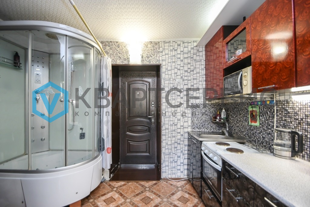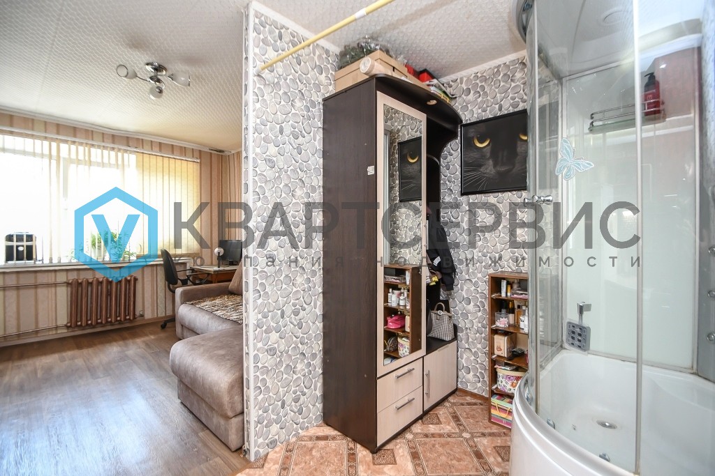 Уютная и светлая, с дополнительным зонированием кухонной зоны. Своя душевая кабина в комнате.