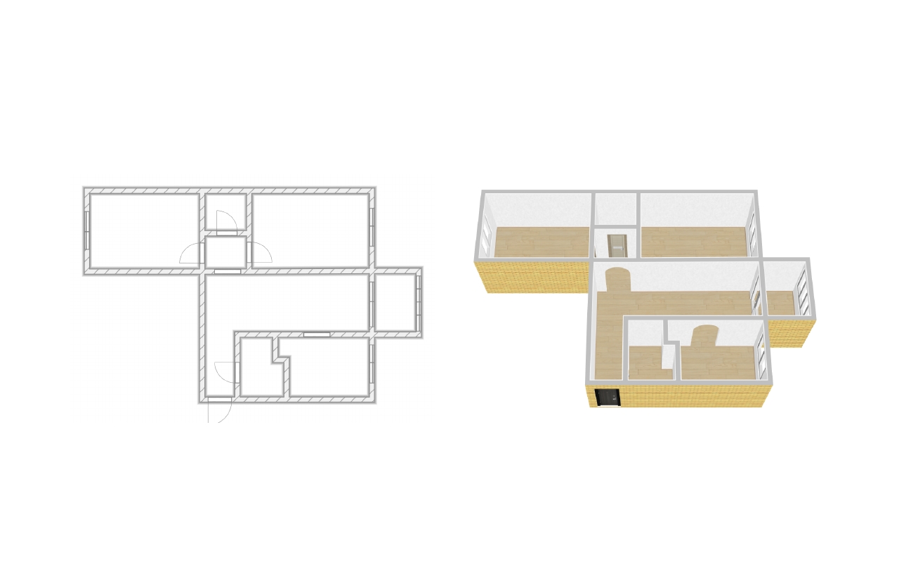 Продуманная геометрия для семьи: просторный зал, функциональная кухня, две уютные комнаты,  просторный санузел.